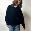 The soft elegance of a boyish v-neck collar, this cozy sweater is crafted in a chunky 5-gauge weight for a beautifully soft hand-feel and tactile warmth. Subtly draped and gently oversized.