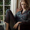 A classic pajama set featuring a comfortably oversized top with a chest pocket and piping at the placket, cuffs, and pocket, and comfortable pant with two side pockets, a button fly, and waist with adjustable drawstring.