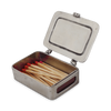 This pewter matchbox is a handsome solution to your candle, incense, fireplace, cigar, or other lighting needs. Understated yet sophisticated, it comes with a box of matches and a pair of spare strikers.