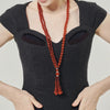 Opera-length, carnelian beaded necklace, ending with a tassel made of stones.