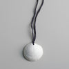 Sculpted from white porcelain and strung on a silk cord, this piece symbolizes feminine intuition and good fortune.